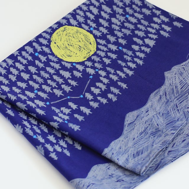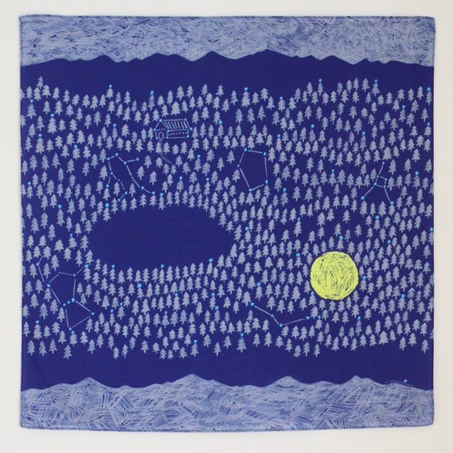 かわいらしい森の木々、ぽっかりとあいた湖、月、満天の星空がモチーフです。